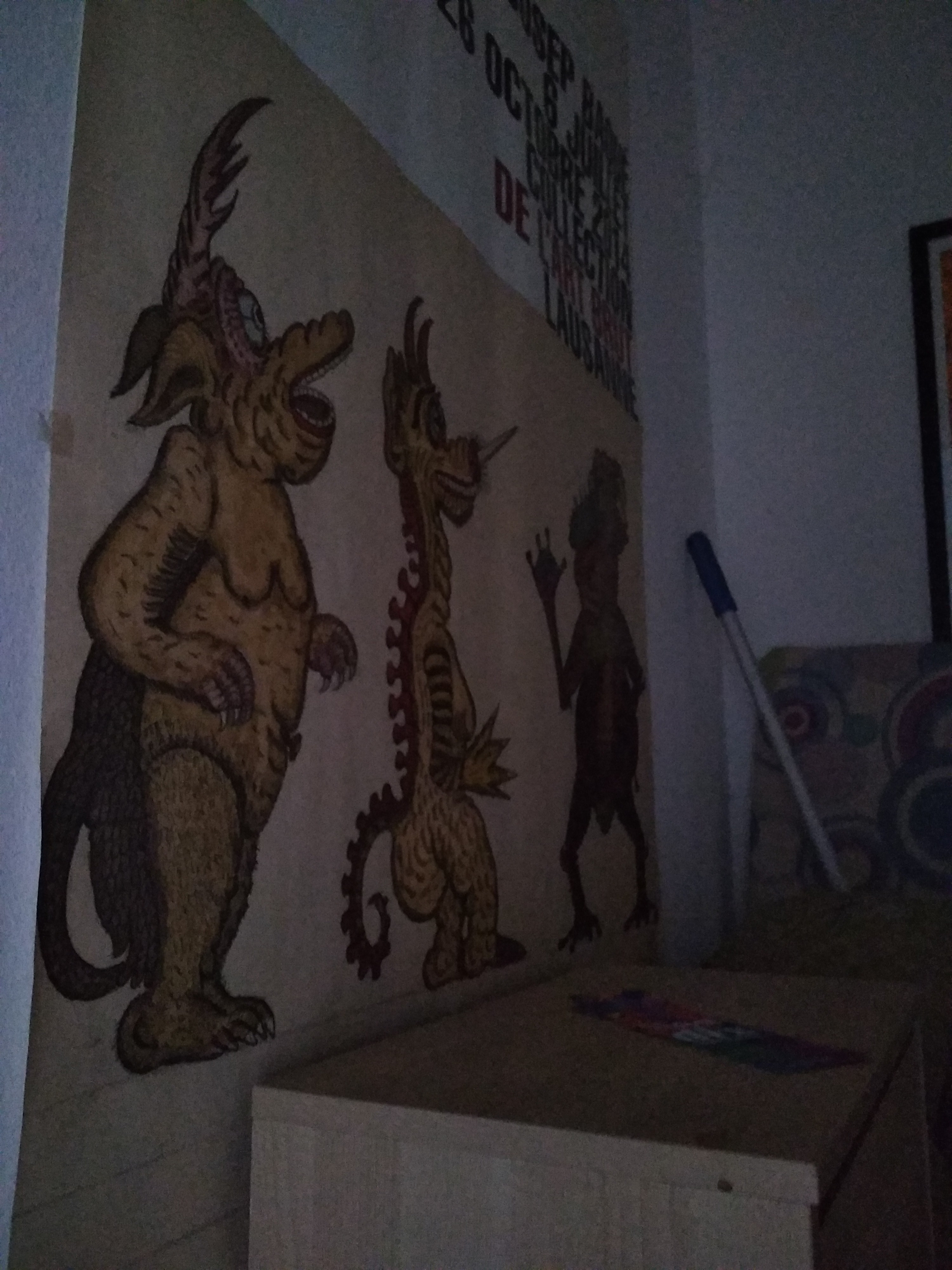 À l'est, de l'autre côté du mur se tient un salon thérapeutique librement accessible et reposant ; dont les fréquences de colloques, séances et consultations se font, pour l'instant, encore de façon assez sage et sporadique.