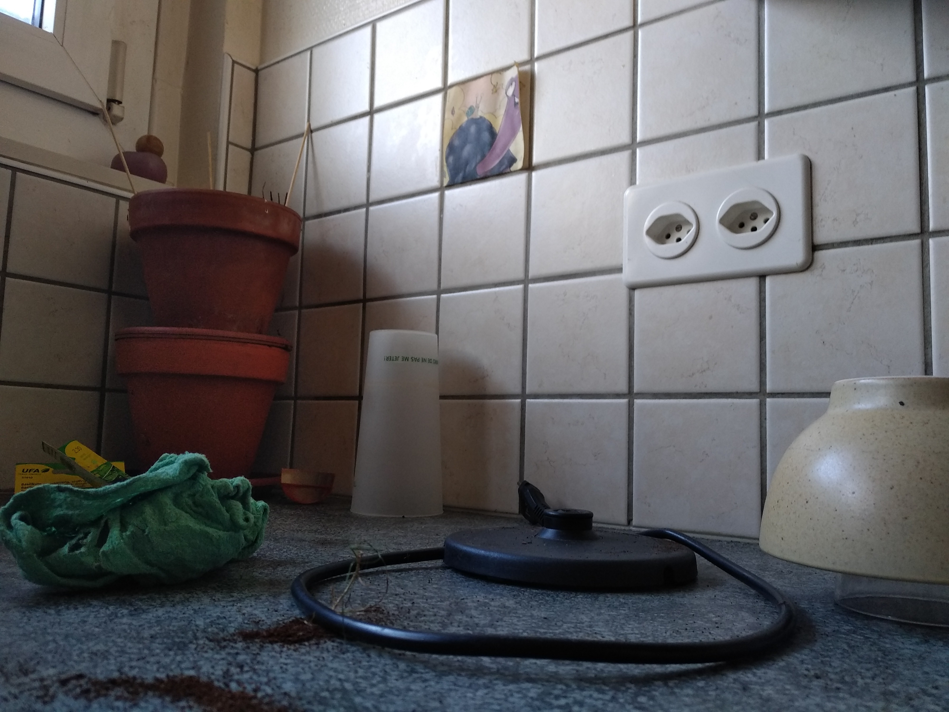Face à ce bien beaux et joli remue-méninges. Une autre porte, plus radieuse encore celle là. Derrière elle une machine à laver le linge moderne ainsi que divers outils, assemblages et autres végétaux.