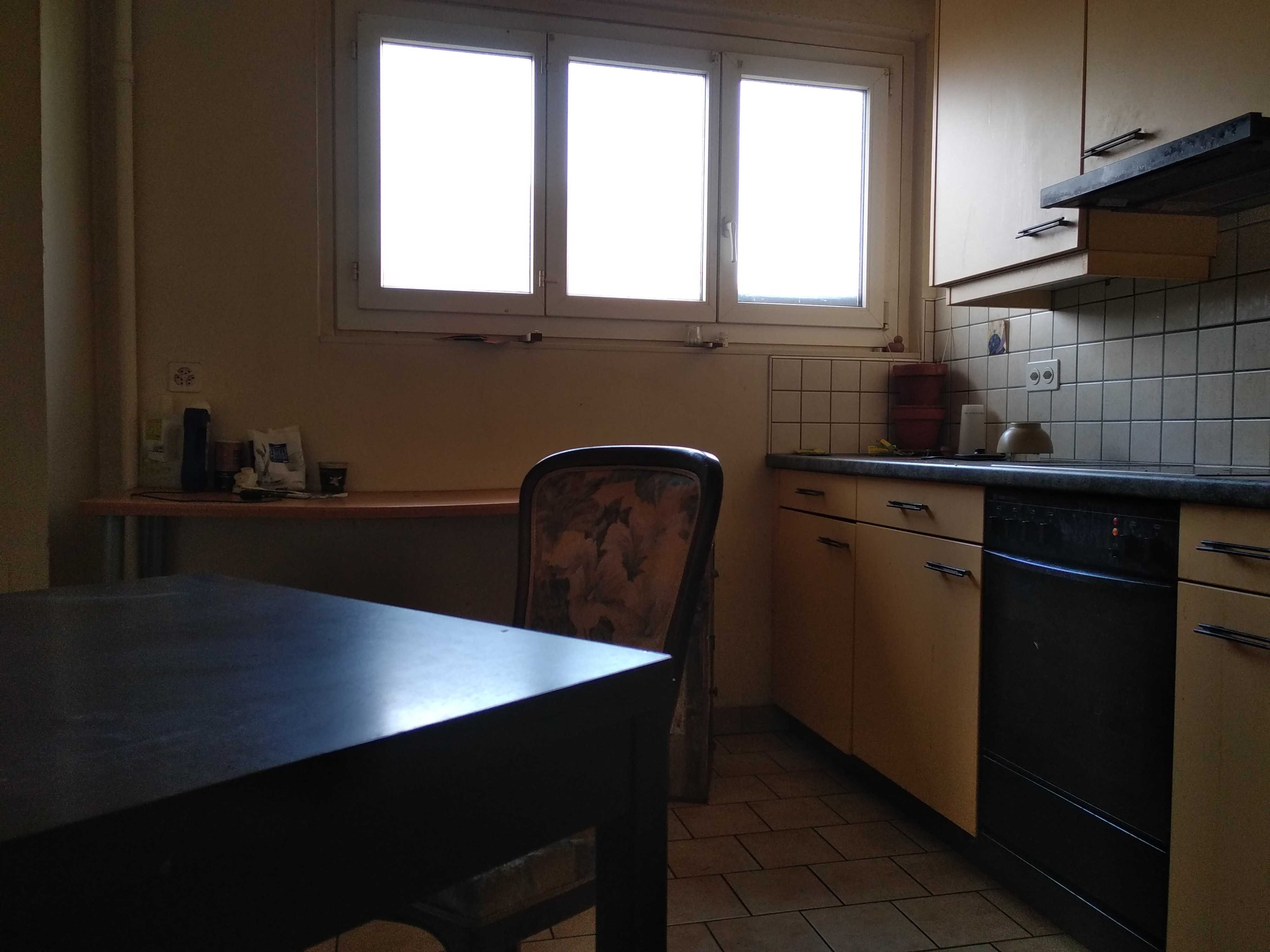 Trois étages plus haut, une fenêtre entre-ouverte donne sur une belle et ancienne cuisine moderne tout équipée. Sur le même palier, accessible à la force des synapses et des mollets, s'entre aperçoit par le cadre de porte du suivant tableau une gigantesque armoire judicieusement fermée de deux portes d'époque sur la gauche de laquelle une vaste chambre avec pignon sur rue se propose d'hors et déjà de vous héberger et d'y accueillir les sources futurs de vos vies, sourires et envies.